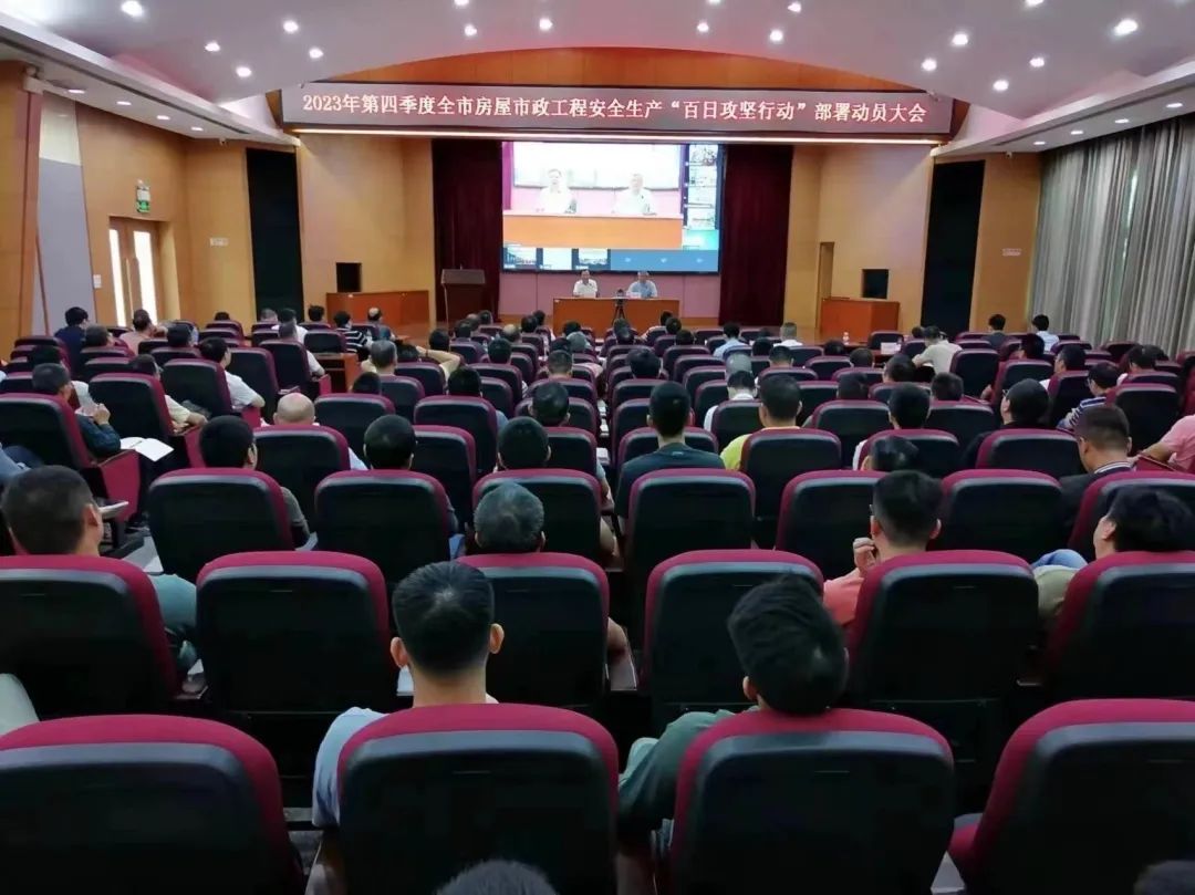 为深入贯彻落实全省住房城乡建设系统2023年第四季度安全生产工作例会暨中秋、国庆假期安全防范会议精神,全力防范化解我市房屋市政工程重大安全风险隐患,坚决遏制房屋市政工程事故发生,10月14日上午,工口漫画 召开房屋市政工程安全生产“百日攻坚行动”部署动员大会。工口漫画 设主会场、各镇街住房城乡建设主管部门设分会场。工口漫画 副局长冯文伟,局各相关科室负责人和有关人员,市水务工程建设管理中心负责人,建筑施工总承包二级及以上资质的在中山市有在建项目的施工企业负责人等在主会场参会。各镇街住房城乡建设主管部门主要领导及全体安全监督人员,所有镇街辖区内已办理施工许可的在建项目现场主要管理人员,镇街属公有建设单位的负责人在各镇街分会场参会。